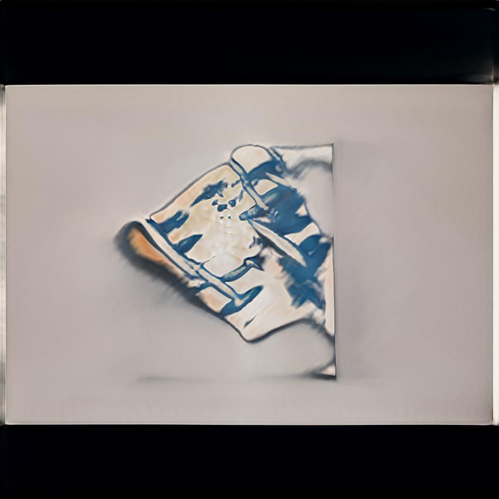 The outputs are bizarre, odd, ugly, beautiful; they are incredible and unexpected. The dataset was a mess. The images are all incredibly varied. Portrait poster, double-page spreads from zines, product shots photographed at low angles, various background colors and dimensions, very little was similar and nowhere near close enough to create what I imagined it would create. Luckily I was completely surprised by what it (we) made.
